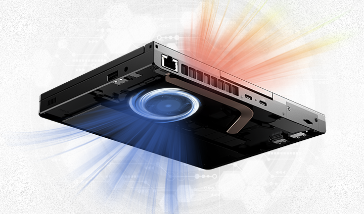 Pure copper heat pipes and hydraulic bearing fans deliver 23% more airflow than previous gen. Intelligent temp control reduces noise, with a keyboard-activated silent mode for nighttime use.